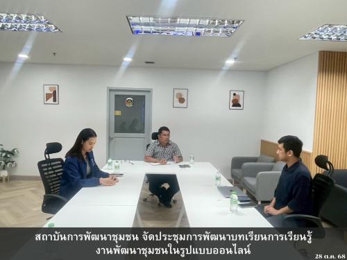 ประชุมการพัฒนาบทเรียนการเรียนรู้งานพัฒนาชุมชนในรูปแบบออนไลน์ วันอังคารที่ 28 ตุลาคม 2568 ณ ห้อง Co-Working Space (ห้องสมุด) ชั้น 5 กรมการพัฒนาชุมชน สถาบันการพัฒนาชุมชน โดยนายอำนาจ สุดสวาท ผู้อำนวยการกลุ่มงานจัดการความรู้ พร้อมด้วยเจ้าหน้าที่ในสังกัด เข้าร่วมประชุมประชุมการพัฒนาบทเรียนการเรียนรู้งานพัฒนาชุมชนในรูปแบบออนไลน์ ร่วมกับบริษัท เอสคริปท์ จำกัด เพื่อพัฒนาบทเรียนในรูปแบบออนไลน์ (E-Learning) ภาพ/ข่าว : กลุ่มงานจัดการความรู้ สถาบันการพัฒนาชุมชน #กรมการพัฒนาชุมชน #กระทรวงมหาดไทย #สถาบันการพัฒนาชุมชน
