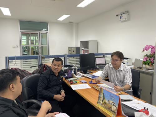 นายณัฎฐิพล วงศ์เมธี ผู้อำนวยการศูนย์วิทยบริการ รักษาราชการแทนผู้อำนวยการสถาบันการพัฒนาชุมชน มอบหมายให้นายสมศักดิ์ สงนาค นักทรัพยากรบุคคลชำนาญการพิเศษ รักษาการในตำแหน่งผู้อำนวยการกลุ่มงานส่งเสริมมาตรฐานการพัฒนาทรัพยากรบุคคล พร้อมด้วย เจ้าหน้าที่สถาบันการพัฒนาชุมชน ร่วมหารือขอความคิดเห็นในการขับเคลื่อน (ร่าง) มาตรฐานการพัฒนาทรัพยากรบุคคล ประจำปี 2569 กับผู้ช่วยศาสตราจารย์กษิดิศ วัชรพรรณ รองคณบดี คณะมนุษยศาสตร์และสังคมศาสตร์