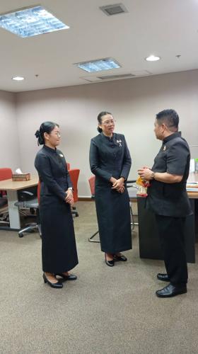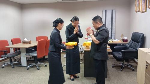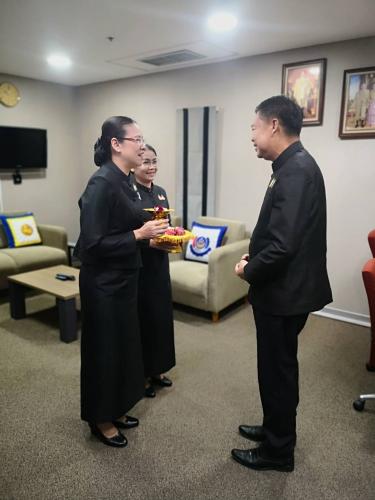 ในโอกาสนี้ นางรัชนี โพธิสัตยา ผู้อำนวยการสถาบันการพัฒนาชุมชน ได้มอบพวงมาลัยแด่รองอธิบดีทั้งสองท่านเพื่อความเป็นสิริมงคลและเป็นการแสดงความเคารพตามลำดับชั้นของหน่วยงาน