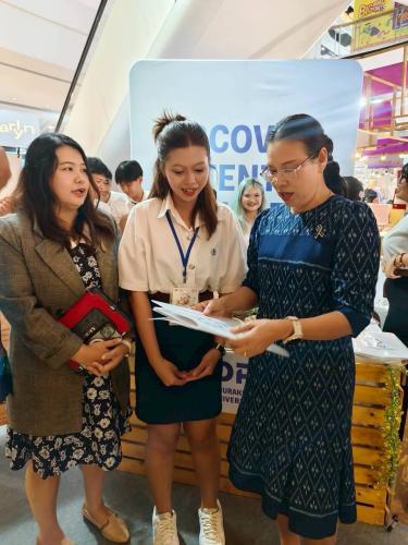นางรัชนี โพธิสัตยา ผู้อำนวยการสถาบันการพัฒนาชุมชน พร้อมด้วย นางสาวประภาพรรณ วุ่นสุข ผู้อำนวยการศูนย์วิทยบริการ และคณะเจ้าหน้าที่สถาบันการพัฒนาชุมชน ได้เข้าร่วมงานและเยี่ยมชมบูธจัดแสดงผลงานของนักศึกษาในกิจกรรมจัดแสดงและจำหน่ายผลิตภัณฑ์ชุมชน "OTOP NONTHABURI NEW LIFE" ซึ่งจัดขึ้นภายใต้โครงการเพิ่มมูลค่าผลิตภัณฑ์ OTOP ด้วยนวัตกรรมยุคใหม่ (Clinic OTOP) โดยมี นางประภา ปานนิตยกุล พัฒนาการจังหวัดนนทบุรี เป็นผู้นำขับเคลื่อนงาน และได้รับเกียรติจาก นายเชษฐา โมสิกรัตน์ ผู้ว่าราชการจังหวัดนนทบุรี เป็นประธานเปิดงาน