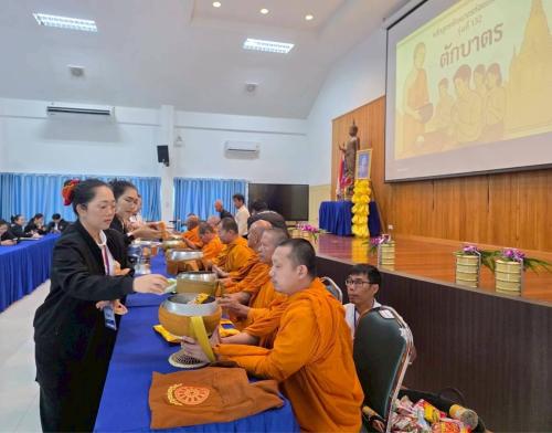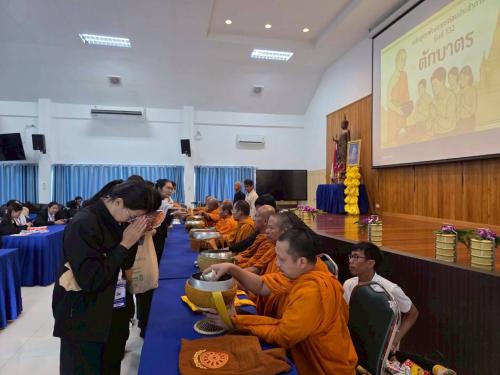 เริ่มต้นกิจกรรมเช้าด้วยพิธีทำบุญตักบาตร เพื่อน้อมถวายเป็นพระราชกุศลแด่สมเด็จพระนางเจ้าสิริกิติ์ พระบรมราชินีนาถ พระบรมราชชนนีพันปีหลวง พระผู้เสด็จสู่สวรรคาลัย มีพระสงฆ์ จำนวน 10 รูป จาก วัดบางละมุง กิจกรรมทำบุญตักบาตรข้าวสารอาหารแห้งถวายพระราชกุศลฯ นำโดยนางปาริชาติ สุรบัณฑิตวงศ์ ผู้อำนวยการวิทยาลัยการพัฒนาชุมชนพร้อมด้วยเจ้าหน้าที่วิทยาลัยการพัฒนาชุมชน และพัฒนากรก่อนประจำการ รุ่นที่ 132 เข้าร่วมกิจกรรมทำบุญตักบาตรครั้งนี้ โดยพร้อมเพรียงกัน